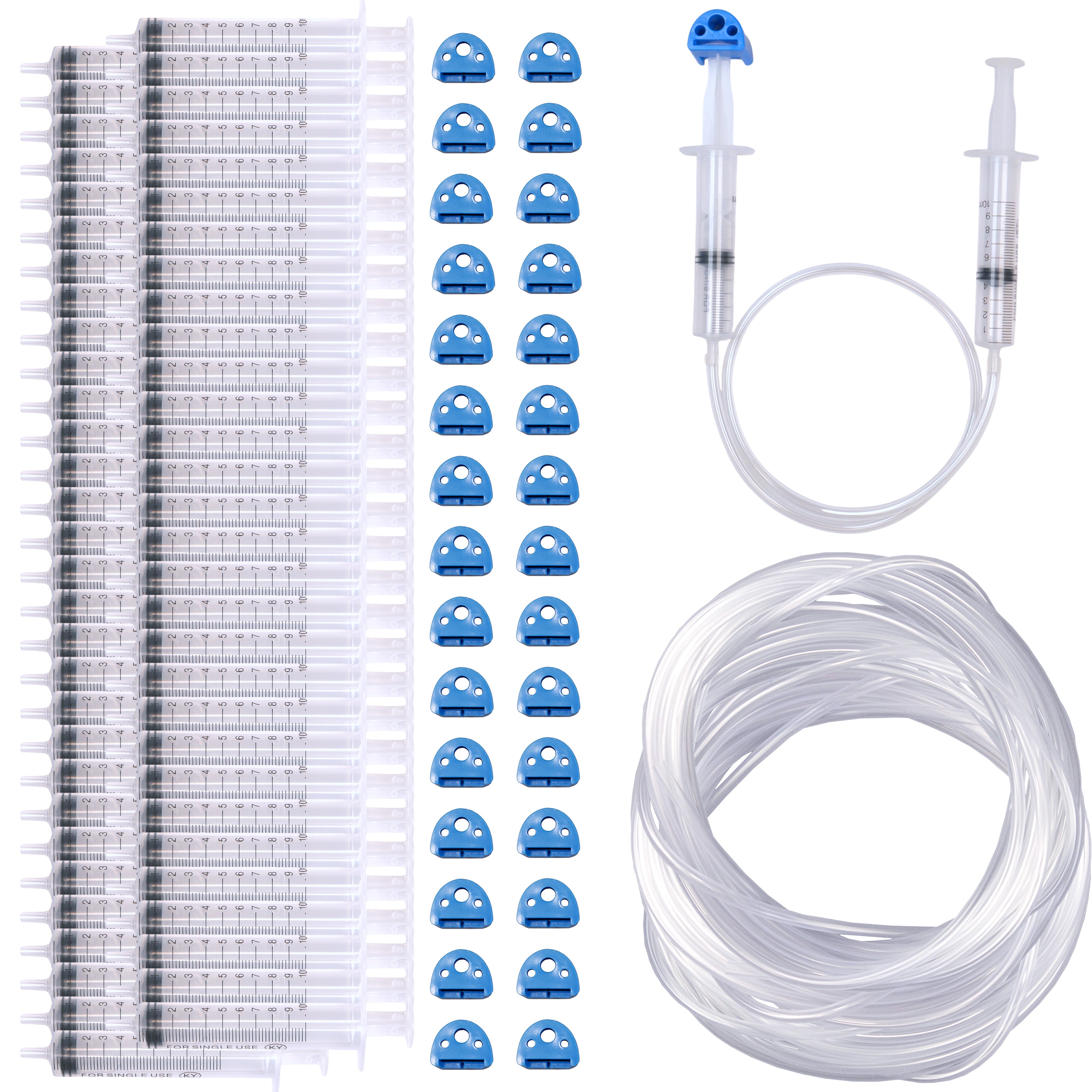 60 syringes (12ml), 30 adapters, and 45-feet of tubing - Enough for 30 hydraulic or pneumatic systems!